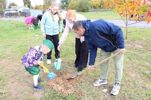 На посадку деревьев вышли воспитанники Козелужского детского сада и учащиеся Козелужской средней школы совместно с работниками обоих учреждений.