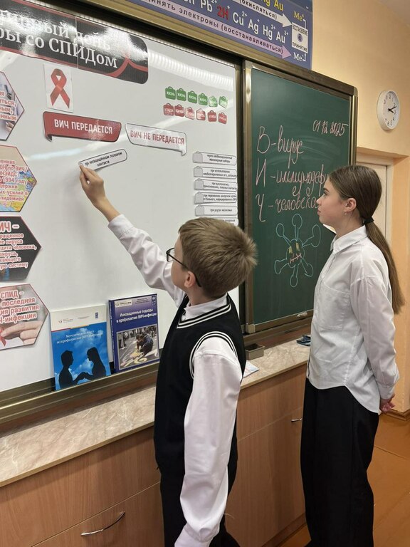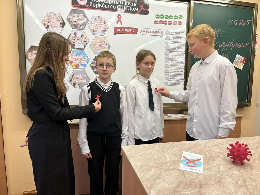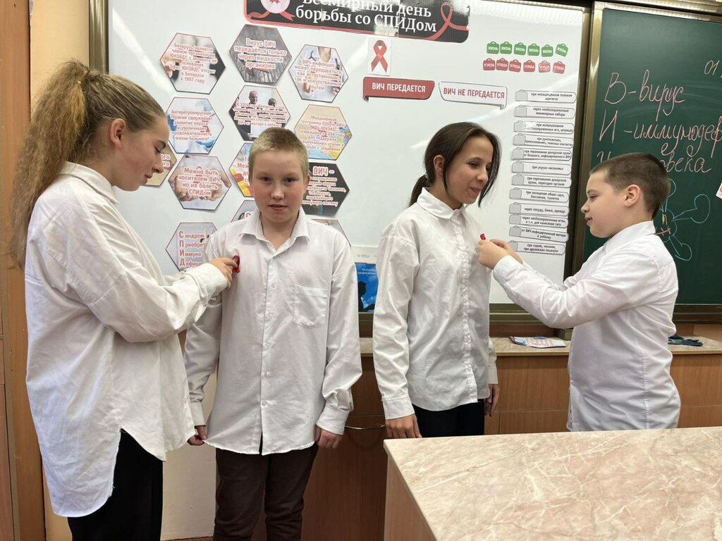 Особенно ценно, что старшие учащиеся взяли на себя роль наставников! После ознакомления с проблемой они рассказали другим школьникам о важности этого дня и вместе с ними разместили «красные ленточки» — международный символ солидарности с теми, кого затронула эпидемия, и памяти о жертвах болезни.