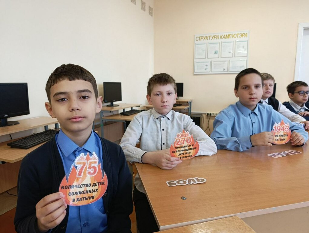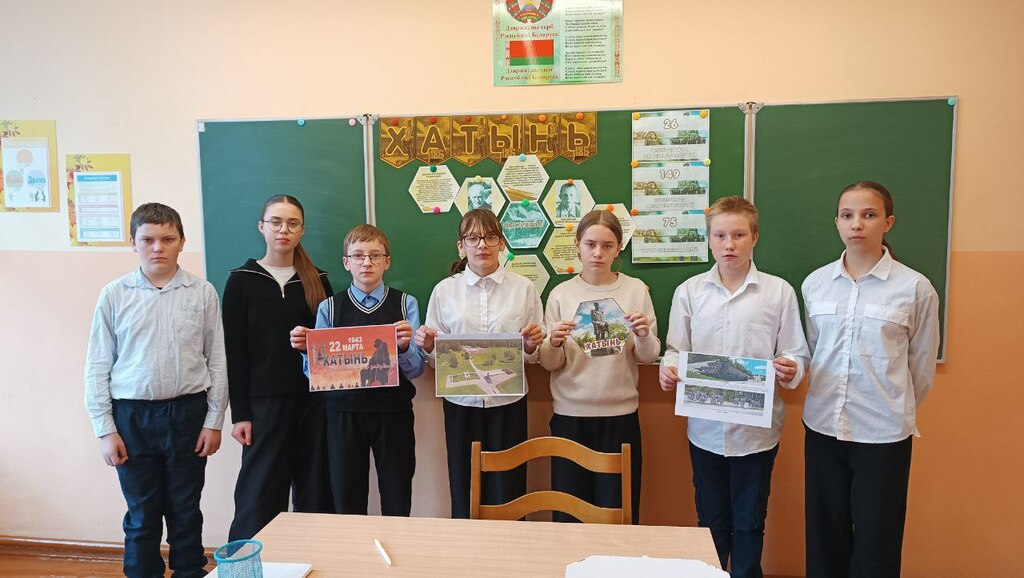 С болью и скорбью ребята вспомнили эти страшные события. Младшие школьники совершили заочную экскурсию по мемориальному комплексу «Хатынь». Учащиеся 5-11 классов вспомнили трагические судьбы жителей Хатынь, которые были заживо сожжены, ответили на вопросы победителей «Числа в истории Хатыни». Учащимися 11 класса была проведена акция «Что Я могу сделать сегодня, чтобы сохранить МИР завтра».